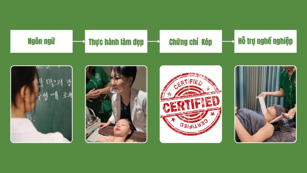 - Đào tạo kết hợp: Tiếng Hàn + Chuyên ngành Làm đẹp + Chứng chỉ quốc tế.