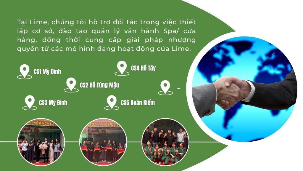 - Quản lý và vận hành các thương hiệu: Lime Spa · Lime Makeup · Lime Hair · Savannah Elephant.