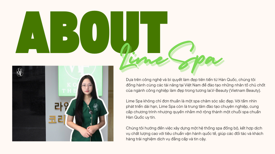 Vượt qua K-Beauty, chúng tôi mở ra một chân trời mới cho V-Beauty (Vietnam Beauty). Dựa trên công nghệ và bí quyết làm đẹp tiên tiến từ Hàn Quốc, chúng tôi đồng hành cùng các tài năng tại Việt Nam để đào tạo những nhân tố chủ chốt của ngành công nghiệp làm đẹp trong tương lai.